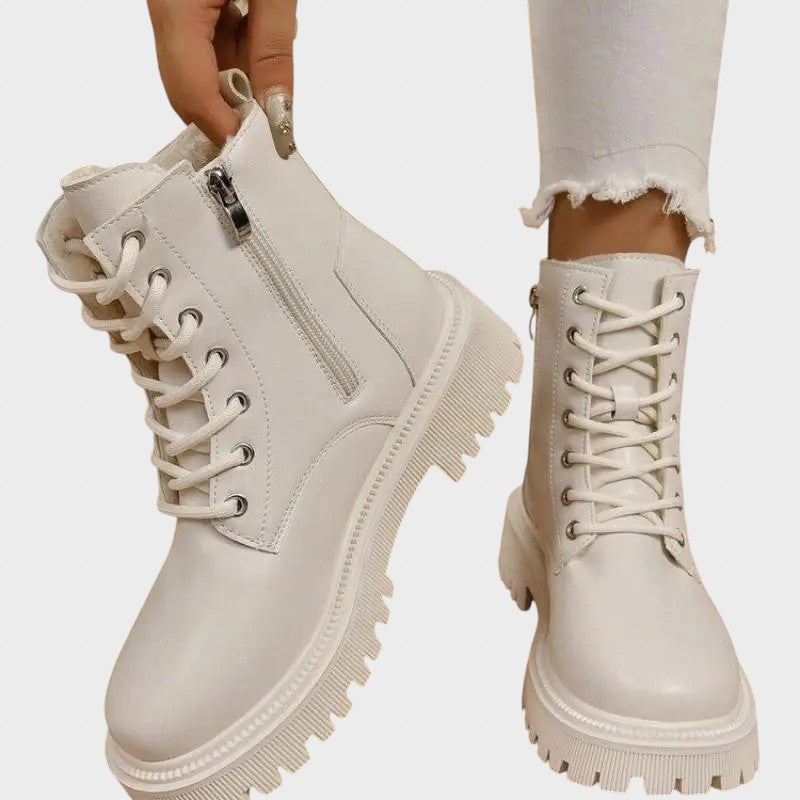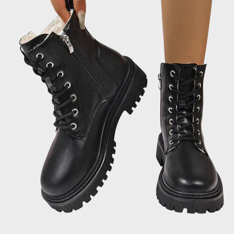 ChicPlush - Botine din Fleece cu Șireturi