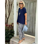 Experimentează sofisticarea relaxată cu Alena - Set Casual Relaxat, unde confortul întâlnește stilul contemporan. Cu un top îndrăzneț de culoare albastru regal și pantaloni imprimați vibranți, acest set aduce o notă proaspătă și elegantă garderobei tale de zi cu zi—perfect pentru weekenduri relaxante, escapade pe coastă sau ieșiri casuale cu stil.