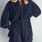 Design atemporal: Cămașă clasică cu nasturi, asociată cu pantaloni scurți cu croială lejeră pentru un look rafinat, dar casual.