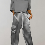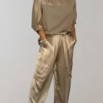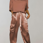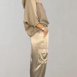 Relaxează-te în stil cu Setul de Lounge Cargo Satinat Finley, unde luxul se întâlnește cu confortul. Acest set versatil este conceput pentru a te menține elegant și confortabil, fie că te relaxezi acasă sau ieși pentru o zi casual.
