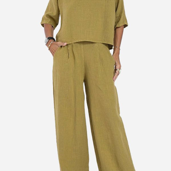 Doina – bluză confortabilă de bază și pantaloni cu picior larg