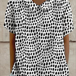 Lily | Cămașă cu imprimeu buline aduce un farmec atemporal cu modelul său de buline negre și albe, distractiv și îndrăzneț. Imaginează-ți un brunch elegant cu prietenii la o cafenea trendy, cămașa ta reflectând perfect energia distractivă și sofisticată a zilei. Această cămașă combină fără efort stilul cu o notă modernă, făcând-o o adăugare perfectă în garderoba oricărei femei.