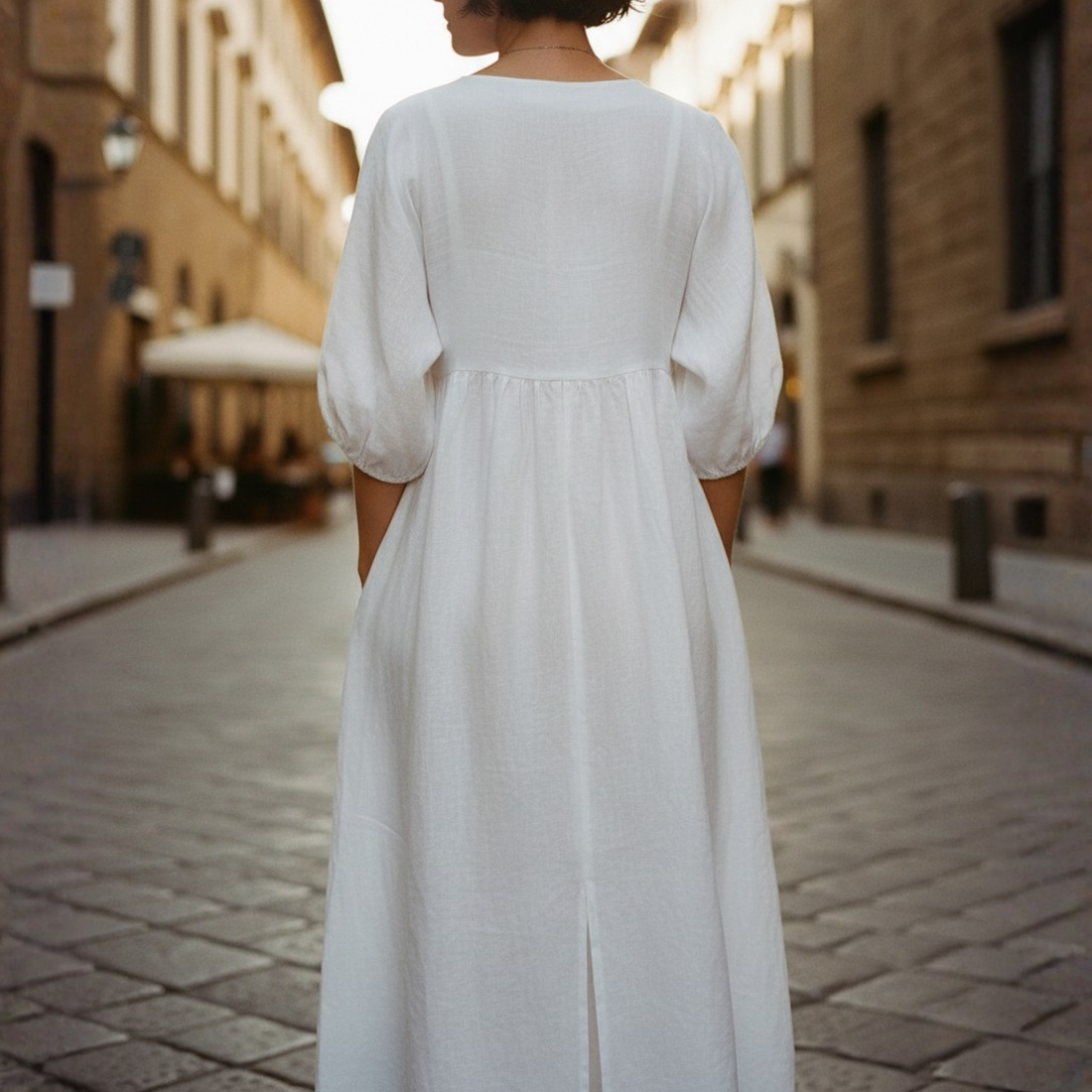 Maxi Rochie Femei Decolteu în V Mâneci Puff Buzunare Laterale Croi Relaxat