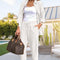 Relaxează-te cu stil cu Sierra - Set Lounge Moale, un ansamblu relaxat care aduce o moliciune elegantă în timpul tău liber. Cu cămașa sa cu nasturi și pantalonii confortabili cu șnur, acest set din două piese este conceput pentru o eleganță lejeră—fie că ești acasă, într-o escapadă de weekend sau ieși la o cafea casual.